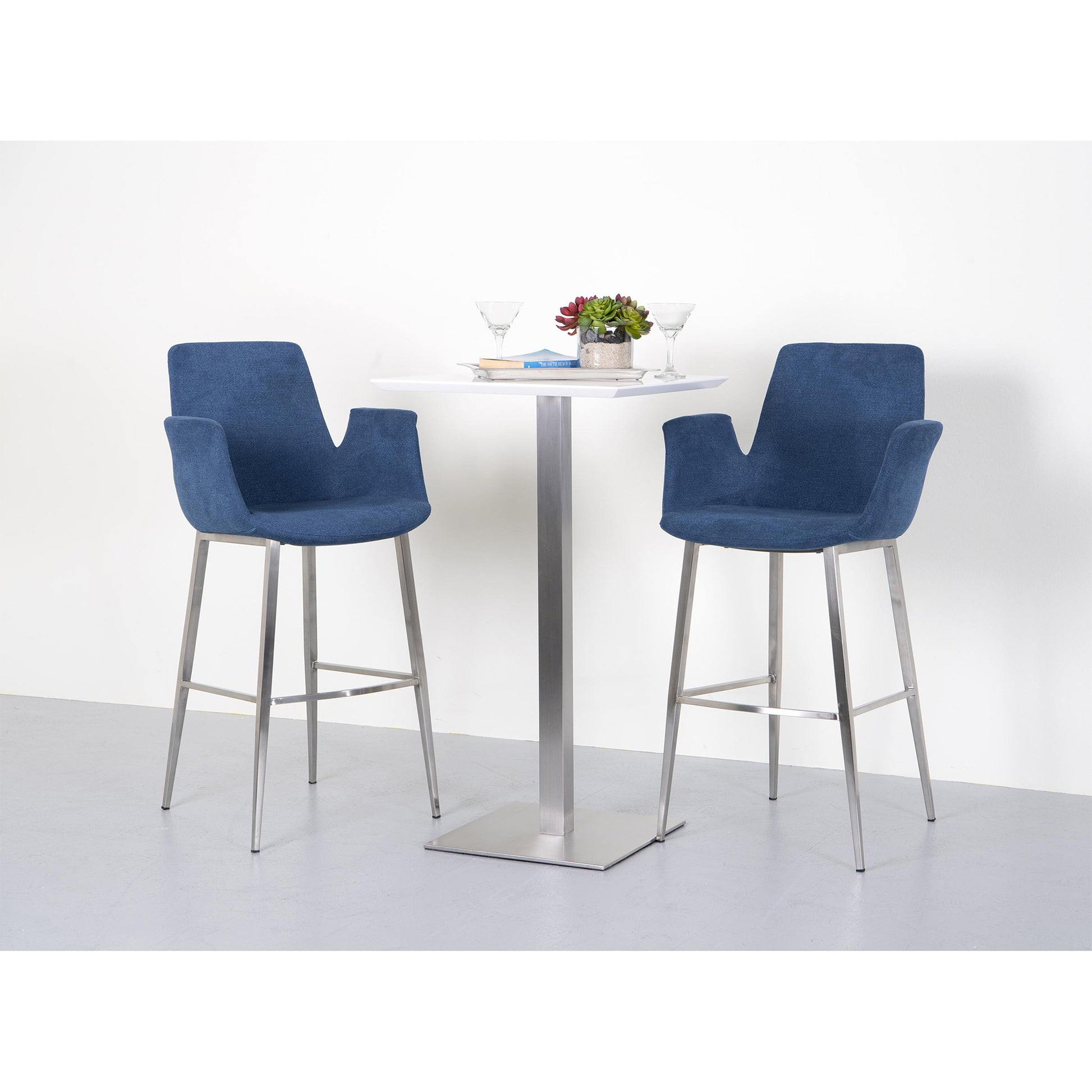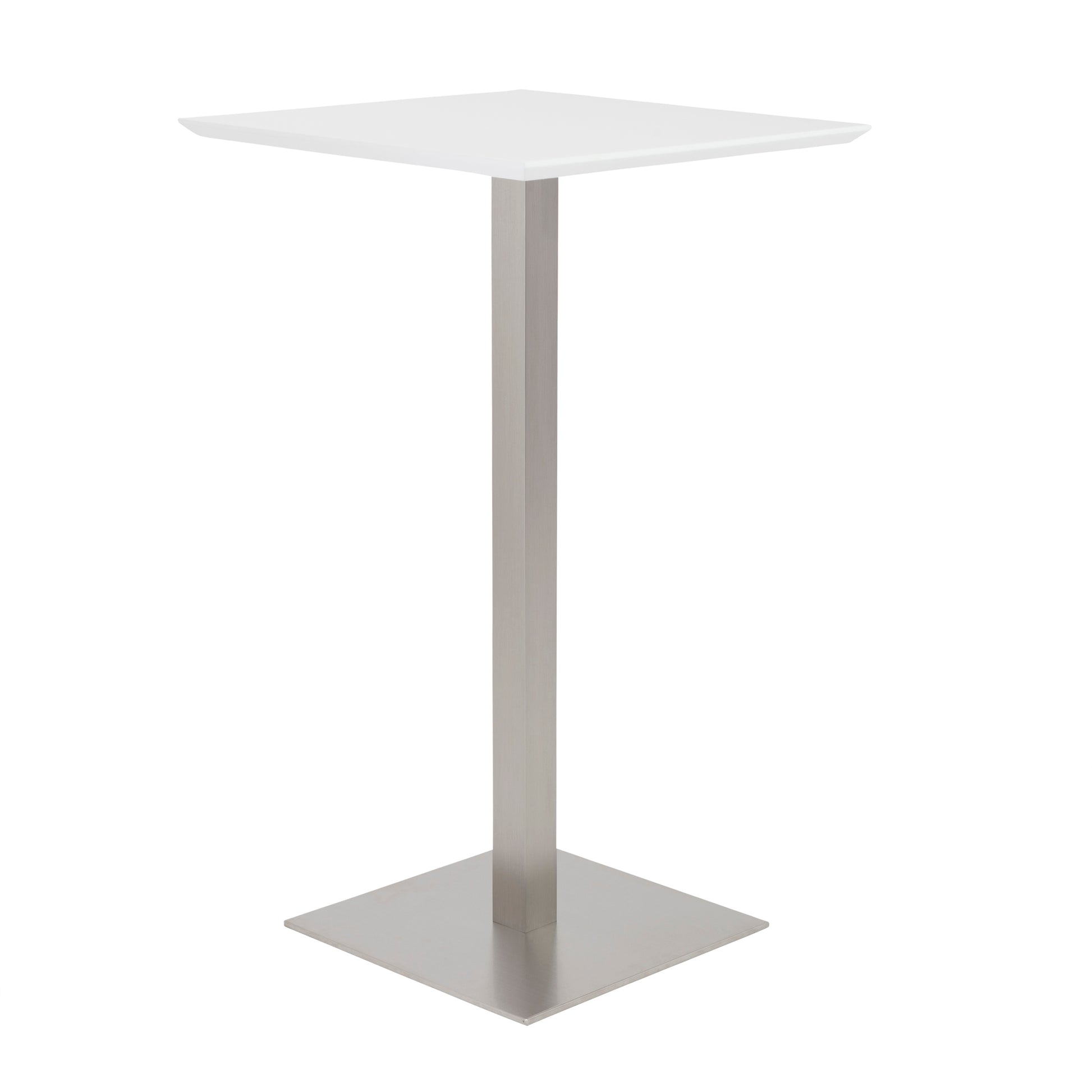 Elodie Bar Table in Matte White with Brushed Stainless Steel Column and Base